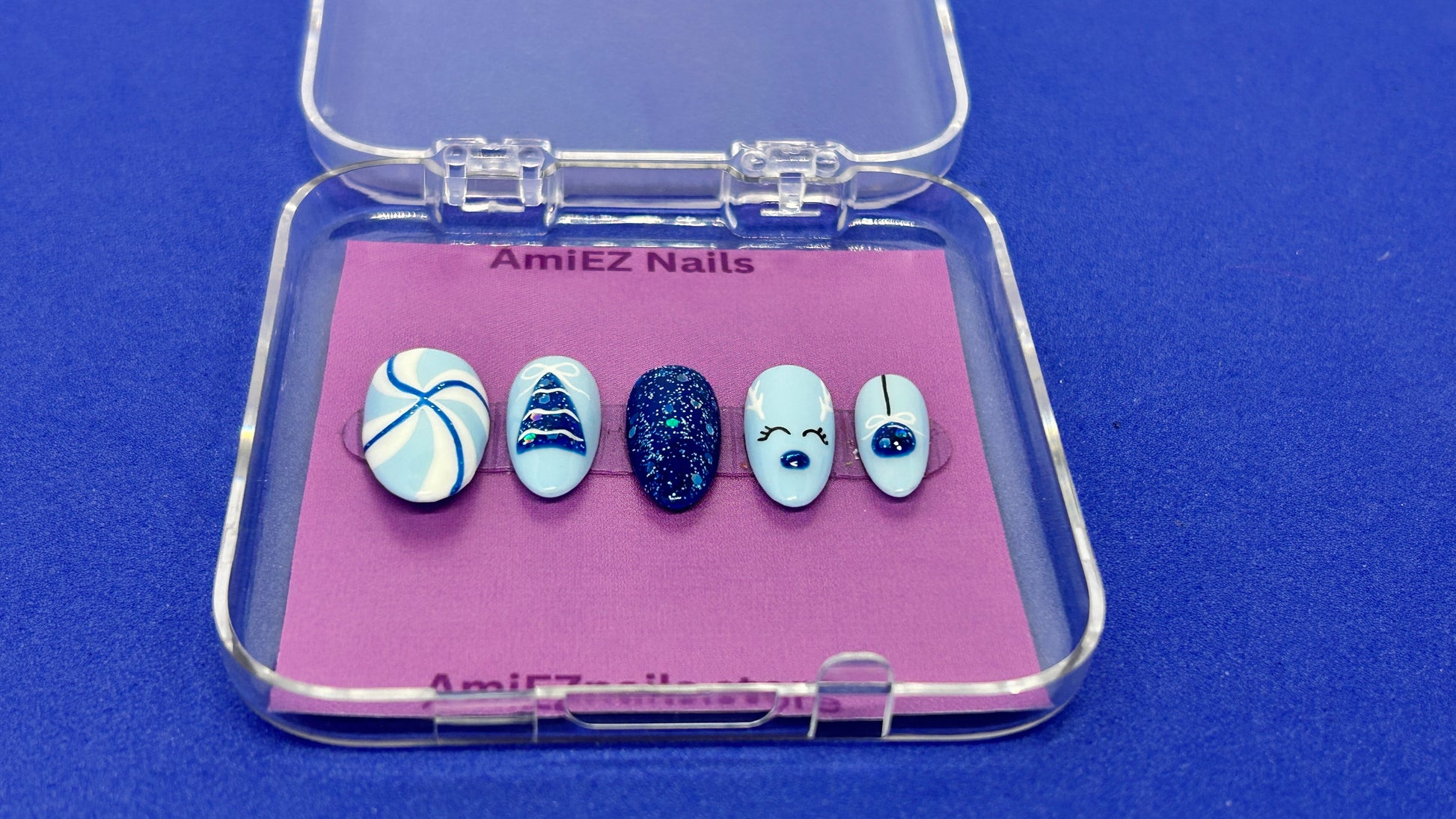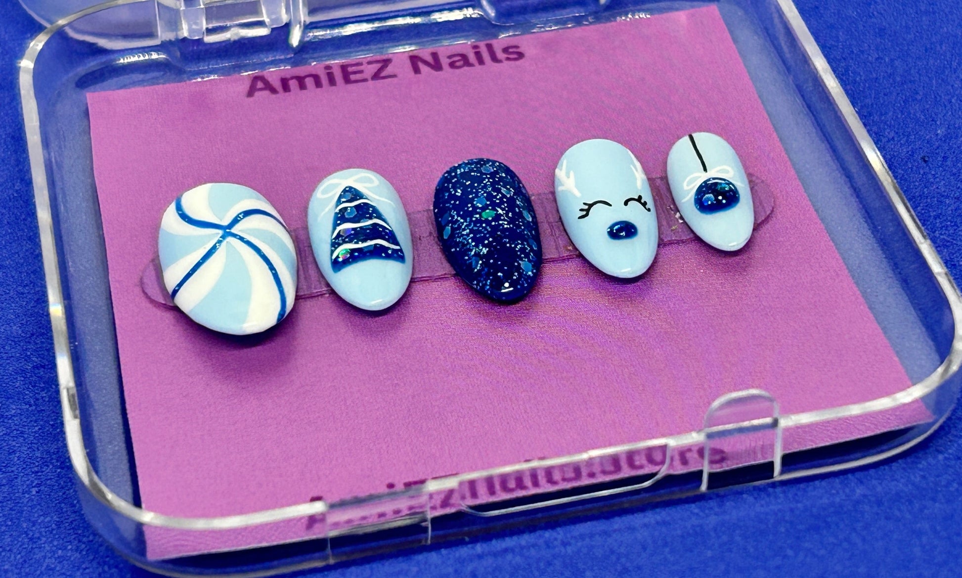 Bring the magic of a Blue Christmas to your nails; beautiful, festive, and made just for you.